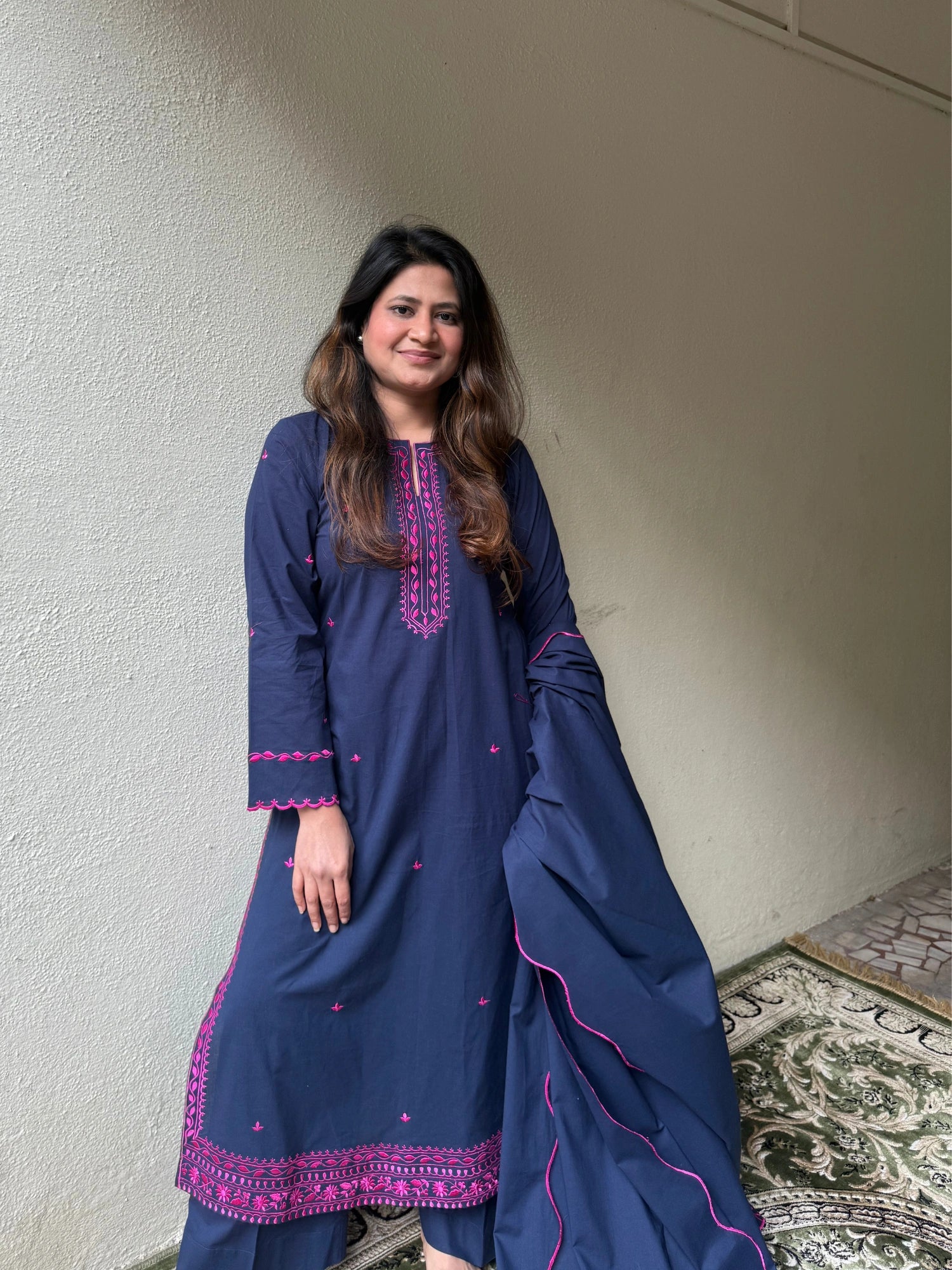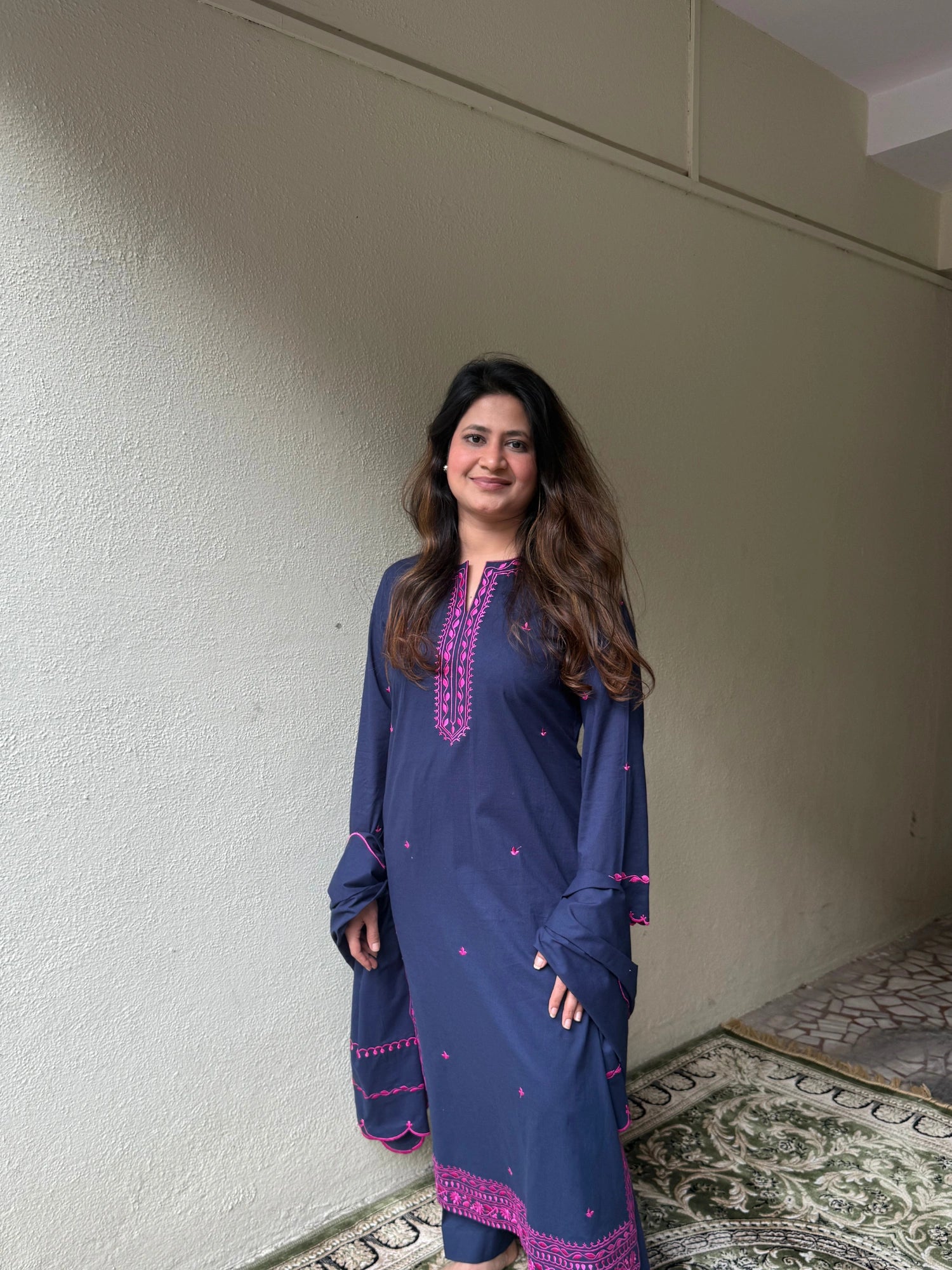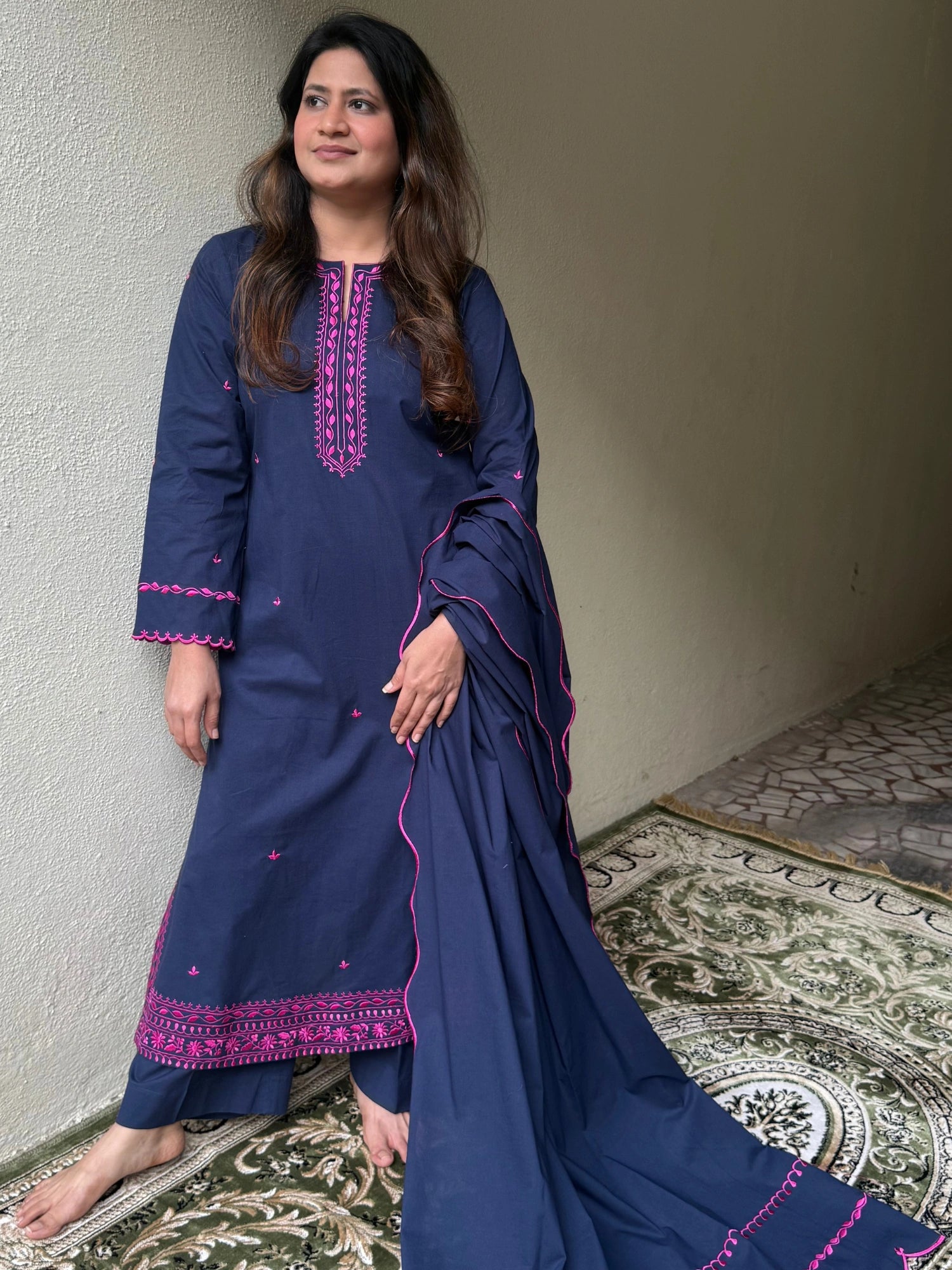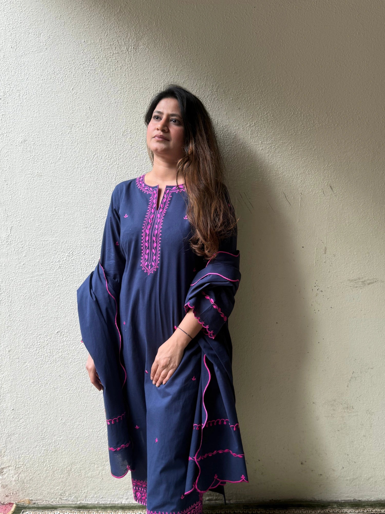 Deep blue embroidered kurta set that feels light and comfortable on the skin. Perfect for daily wear, office days, and relaxed family gatherings.